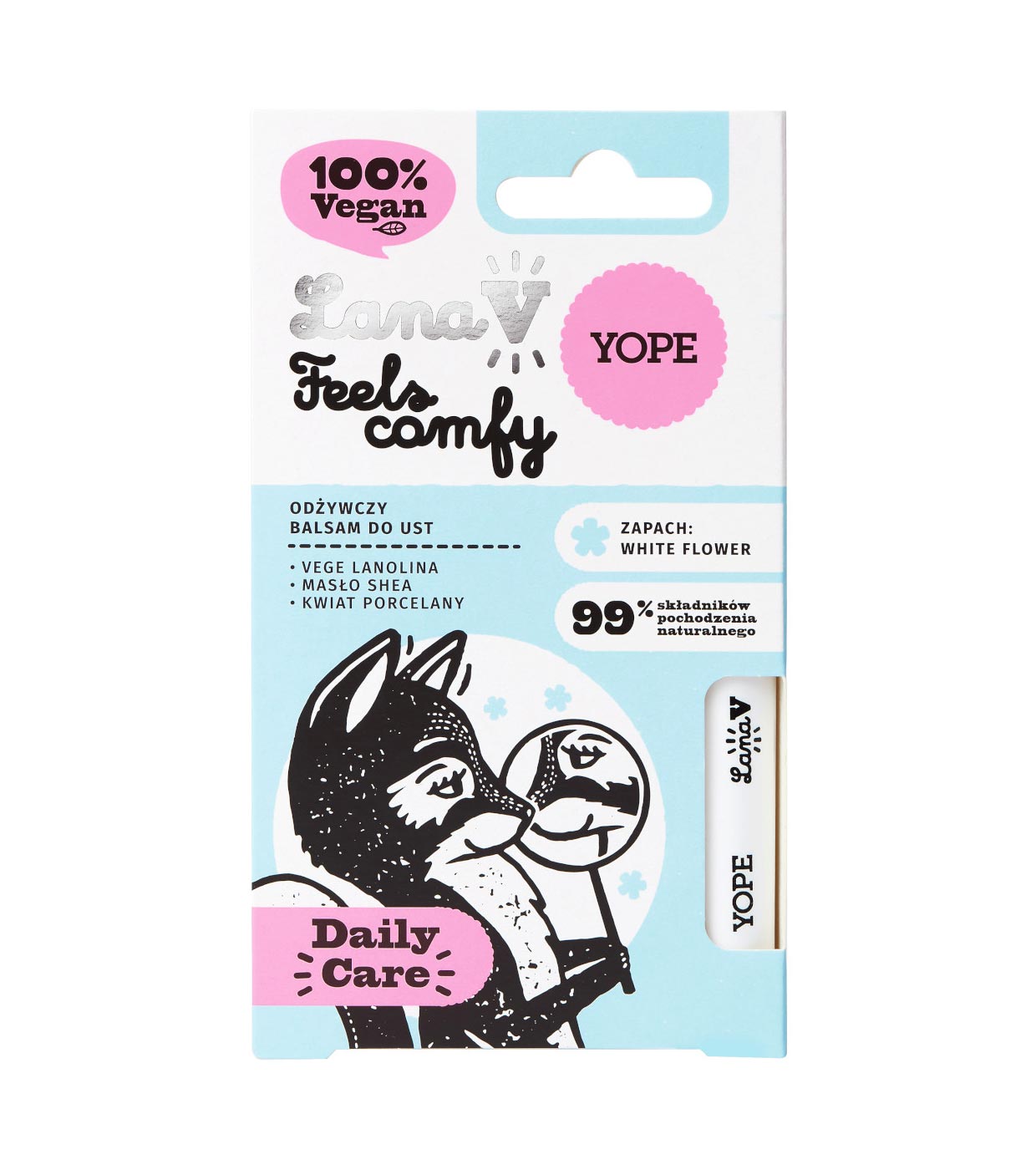 Feels Comfy da Yope é um protetor labial nutritivo à base de lanolina vegana.