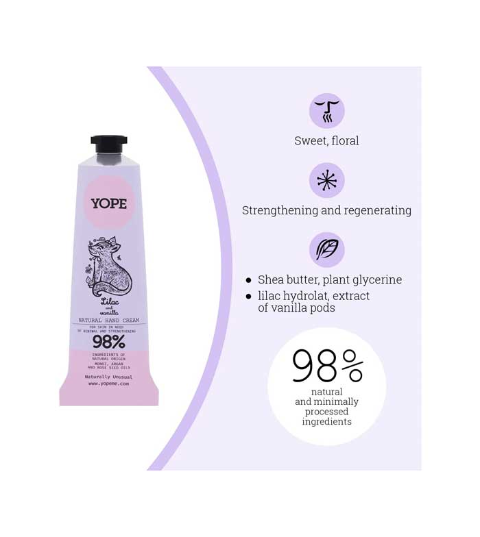 Este creme aveludado com um doce aroma de lilás e uma nota de sobremesa de baunilha hidrata, fortalece e rejuvenesce a pele das mãos.