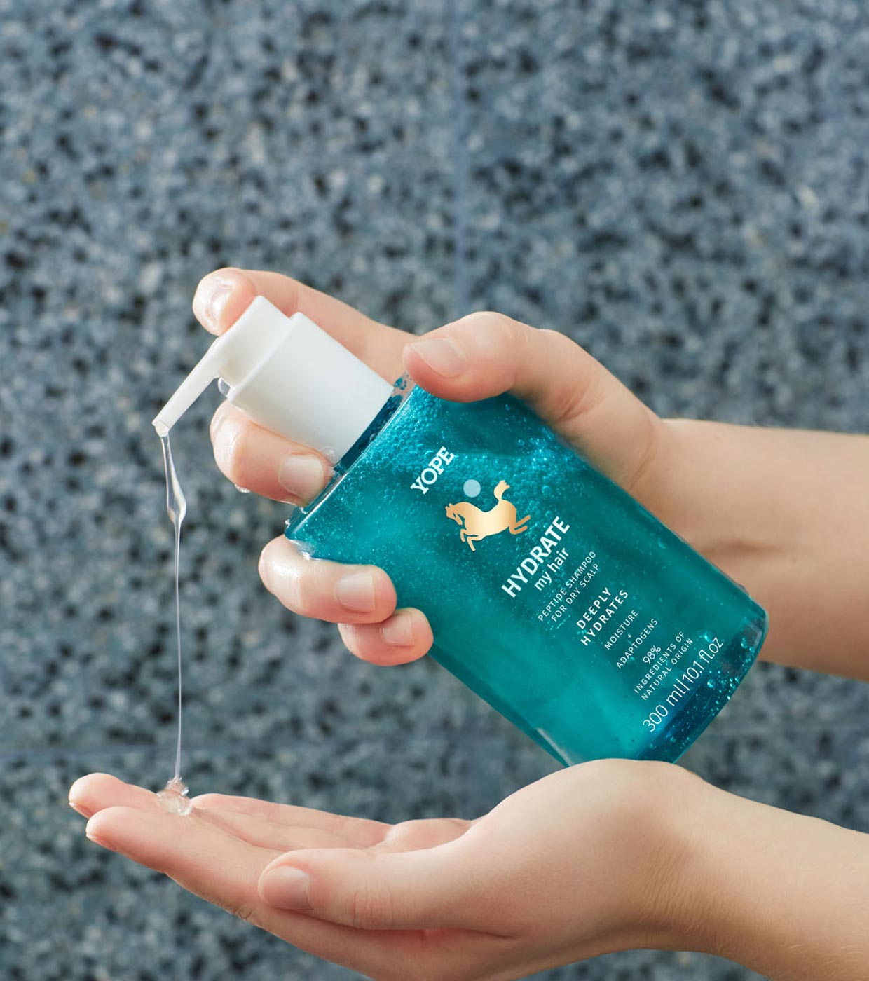 Shampoo natural com peptídeos para couro cabeludo seco Hydrate My Hair da Yope.