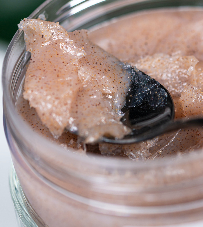 Carlame encanta este exfoliante, tiene grano fino. Deja una sensación en la piel con una pelicula de aceite. Y su olor sin duda es de 10! Lo recomiendo!