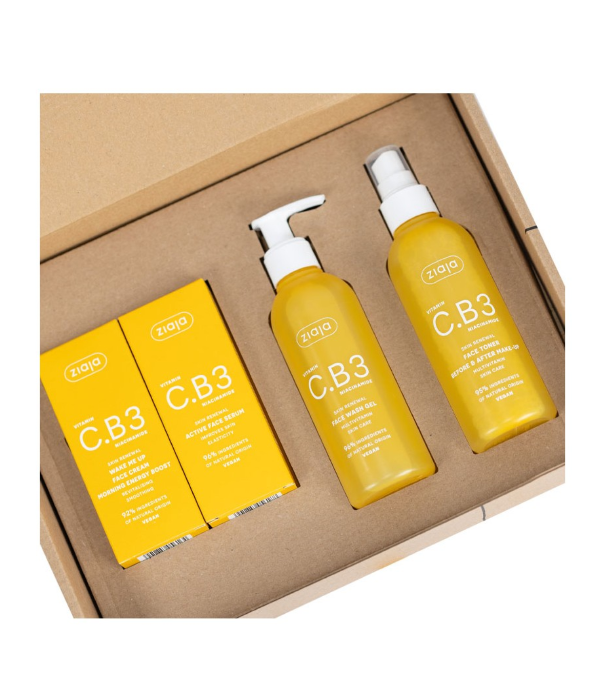 Este pack de Vitamina C.B3 Niacinamida vem apresentado numa elegante caixa Ziaja, o que o torna o presente perfeito para aquelas pessoas especiais que pretendem cuidar da sua pele com produtos de elevada qualidade e eficácia comprovada.