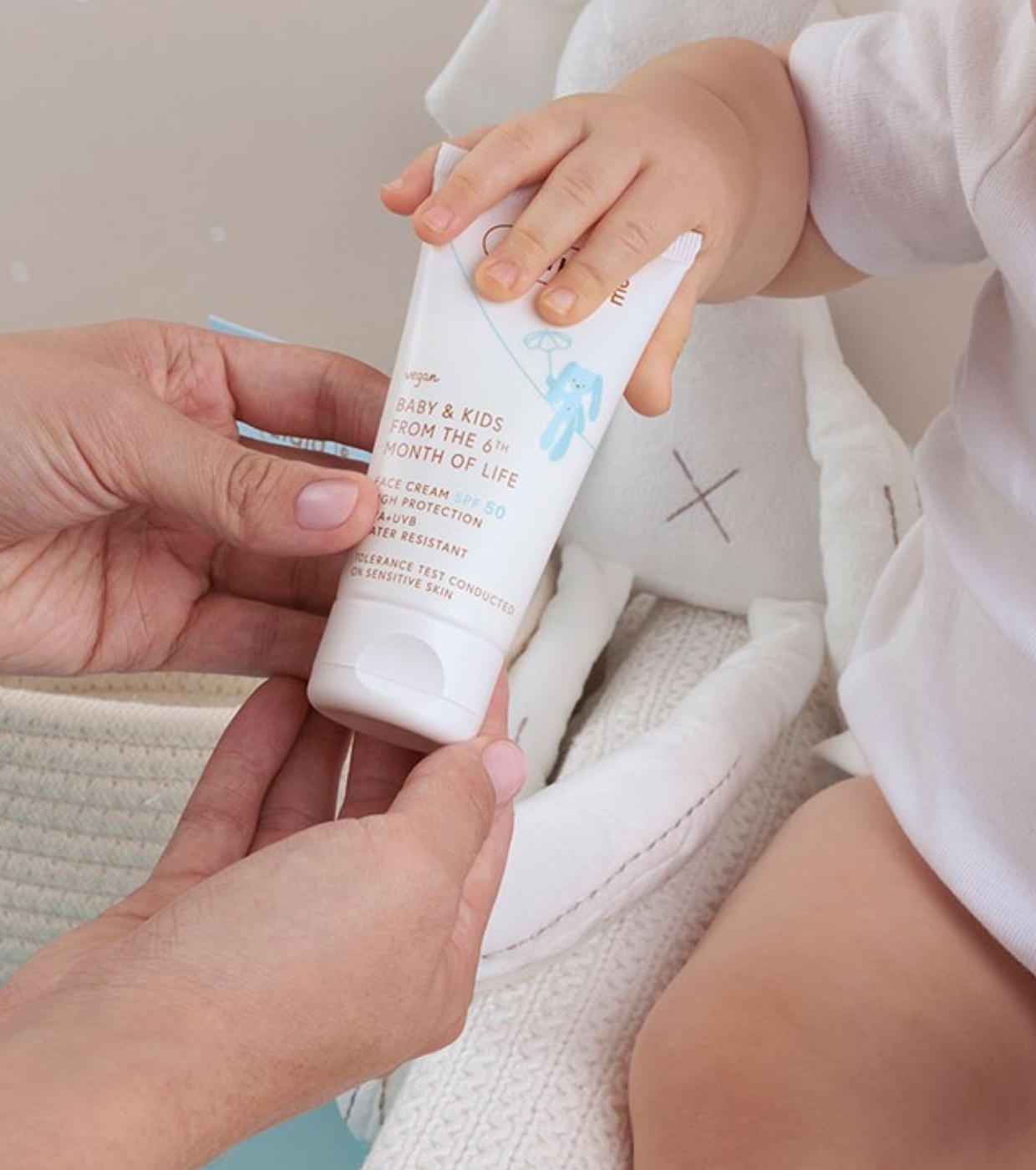 Baby & Kids O creme facial à prova d'água FPS 50 para bebês e crianças foi especialmente desenvolvido para proteger a pele dos pequenos da luz solar e da luz azul HEV.